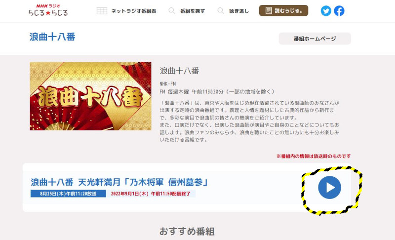 最近のNHKラジオは「らじる★らじる」経由で録音できると共に、全てではないものの「聴き逃し」サービスとして、 過去の番組も一週間ほどは聞けるようになっている。